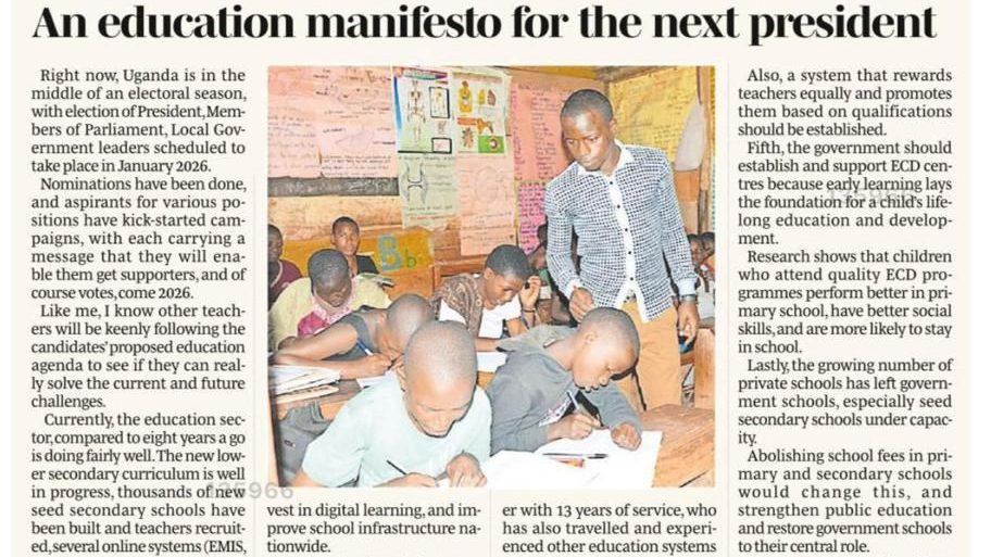 The issues raised by teacher and education advocate Emmanuel Angoda in the LETTER OF THE DAY published in the Daily Monitor on Friday, November 07, 2025 reflect the concerns of many Ugandans who want a modern, fair, and accountable education system. With 13 years of classroom experience and exposure to global systems, his call for curriculum reform, stronger accountability, teacher welfare, digital learning, ECD investment, and revitalisation of public schools is valid and timely. What is equally important, however, is acknowledging that the NRM Government has already taken major steps to address these very concerns through clear programmes, substantial investments, and presidential directives under the NRM Manifesto 2021–2026 and the emerging 2026–2031 agenda.
